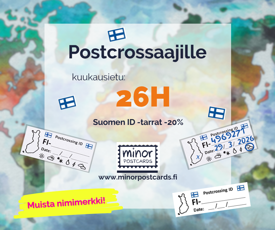 Minorin kortit ja tarrat on tehty Suomessa ja suunniteltu lähtemään maailmalle. Happy Postcrossing!